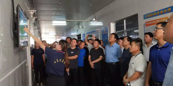 參觀完畢后,與會人員來到山東竹泉村食品有限公司對白條車間隱患排查應急安全管理云平臺使用演示進行觀摩。