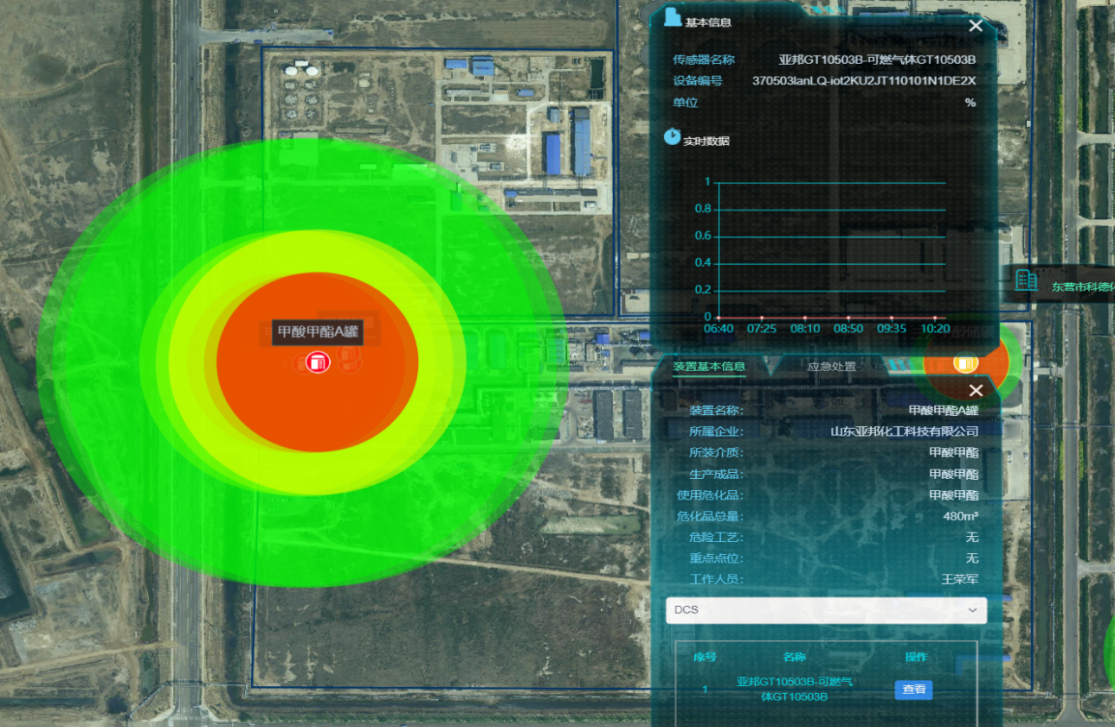 六是綜合防控一張圖,讓隱患無處遁形。“危化品園區監管子系統”可通過“一張圖”隨時查看危化品園區全方位實時數據,同時借助物聯網感知設備,可實現24小時監測其化學氣體濃度、空氣質量、電氣、液壓、液位、氣壓、濕度、溫度、風向、風速等數據,根據既定的數據模型,計算分析后,生成實時狀態評估報告,進而督促企業進行整改。