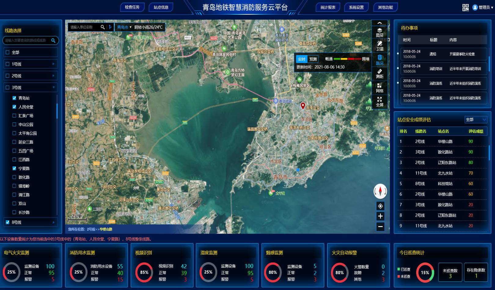 據(jù)介紹,“青島地鐵智慧消防服務(wù)云平臺(tái)”在青島地鐵各級(jí)監(jiān)管機(jī)構(gòu)、各路段與各站點(diǎn)如何有效提高管理,主要體現(xiàn)在以下幾個(gè)方面: