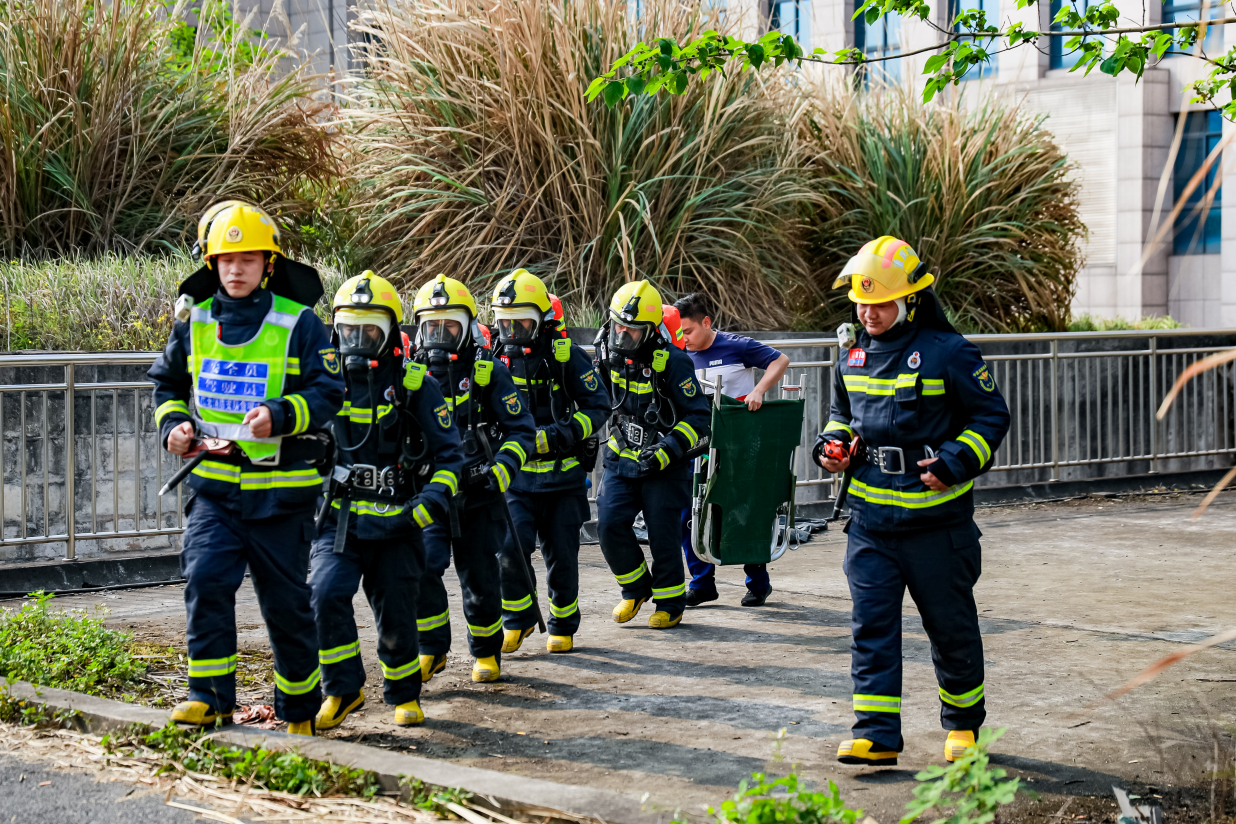 下午的現場演練,由中國應急管理學會應急產業工作委員會秘書長單位青島海麗雅集團,作為主要技術承辦方。其所屬的青島蛟龍救援隊聯合重慶市消防救援總隊機動支隊、江北支隊、中國船舶重慶華渝電氣集團有限公司、重慶國飛通用航空設備制造有限公司、青島峻海物聯科技有限公司、北京威準科技有限公司完成四個科目的實戰化演練和展示。現場模擬了典型山岳救援場景,完成了具有較高難度的高空火災環境繩索疏散救援演練(含內部人員定位系統演示)、大跨度重型物資輸送、山岳救援裝備及技戰術演練和耐高溫繩索等救援裝備展示等,并展現了一批高精尖救援裝備。