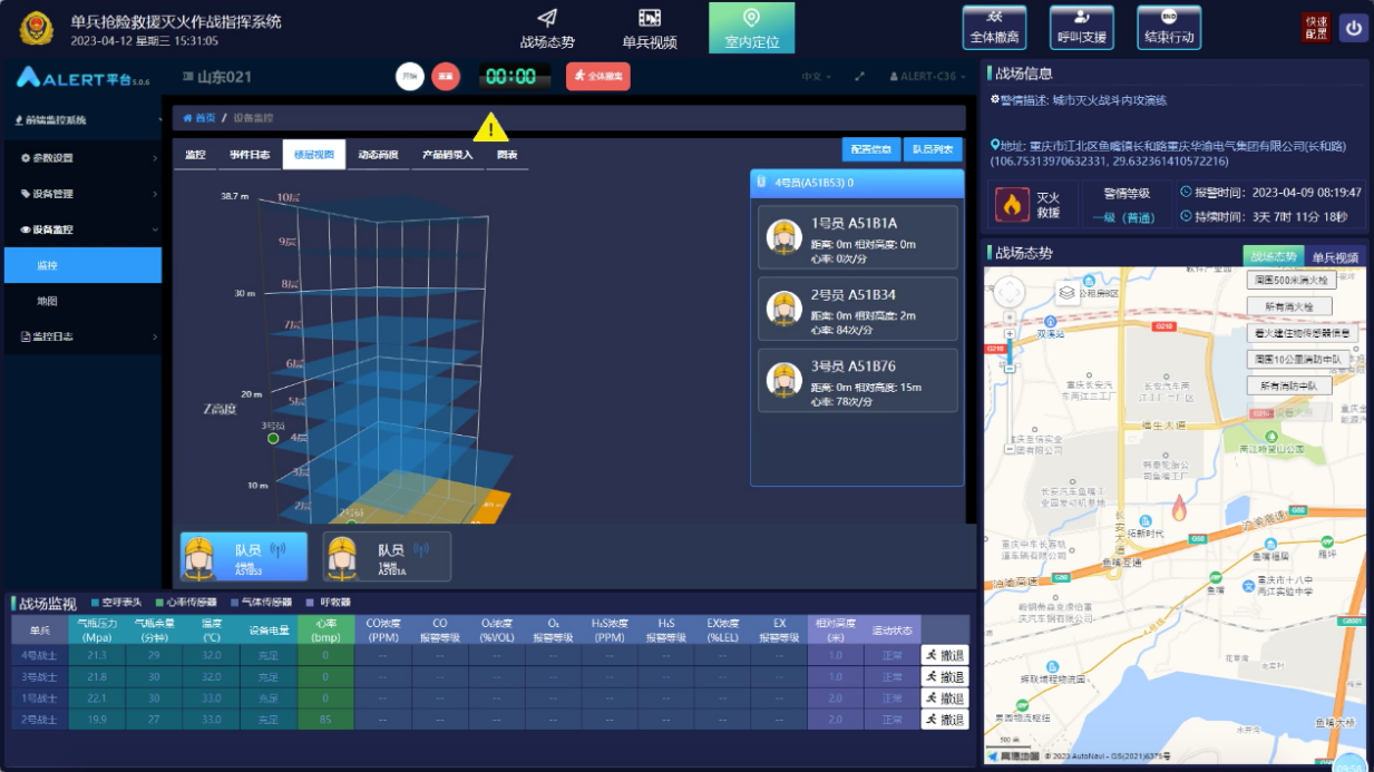 作為此次活動協辦單位的青島峻海物聯有限公司提供的演練裝備包含視頻影音圖傳系統、生命體征監測系統、內攻等級系統、綜合定位信標以及智能空呼監測系統,解決救援現場人員定位、單兵監測、搜救不及時的難題,在互聯網中斷時,還可以切換成為MESH自組網模式,保障現場視頻語音數據傳輸。