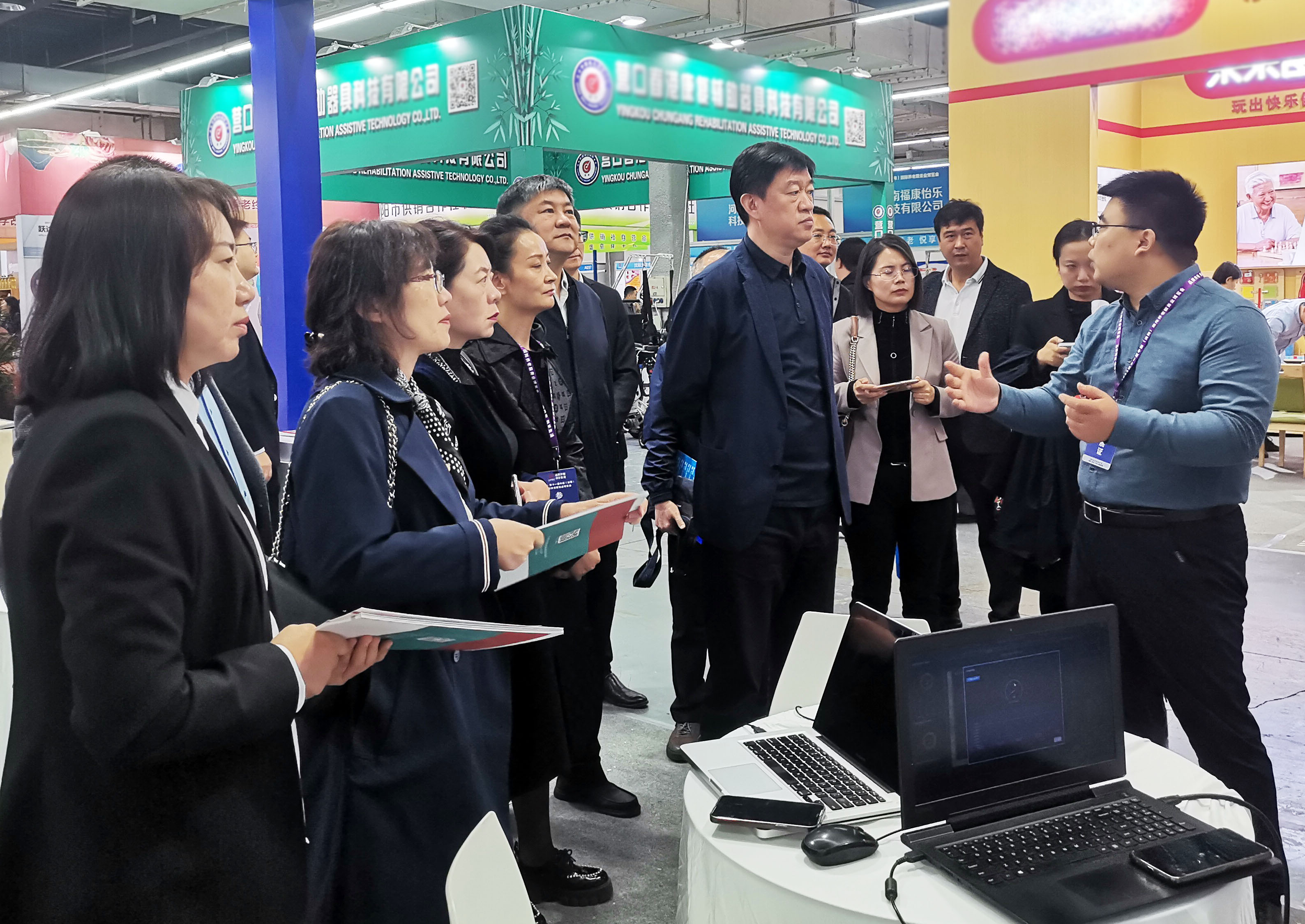 在相關(guān)人員的陪同下,青島市養(yǎng)老協(xié)會(huì)會(huì)長(zhǎng)楊乃發(fā)等領(lǐng)導(dǎo)前來(lái)峻海物聯(lián)展位進(jìn)行現(xiàn)場(chǎng)會(huì)觀摩,與峻海物聯(lián)的工作人員深入探討智慧產(chǎn)業(yè)康養(yǎng)化的未來(lái)發(fā)展前景。