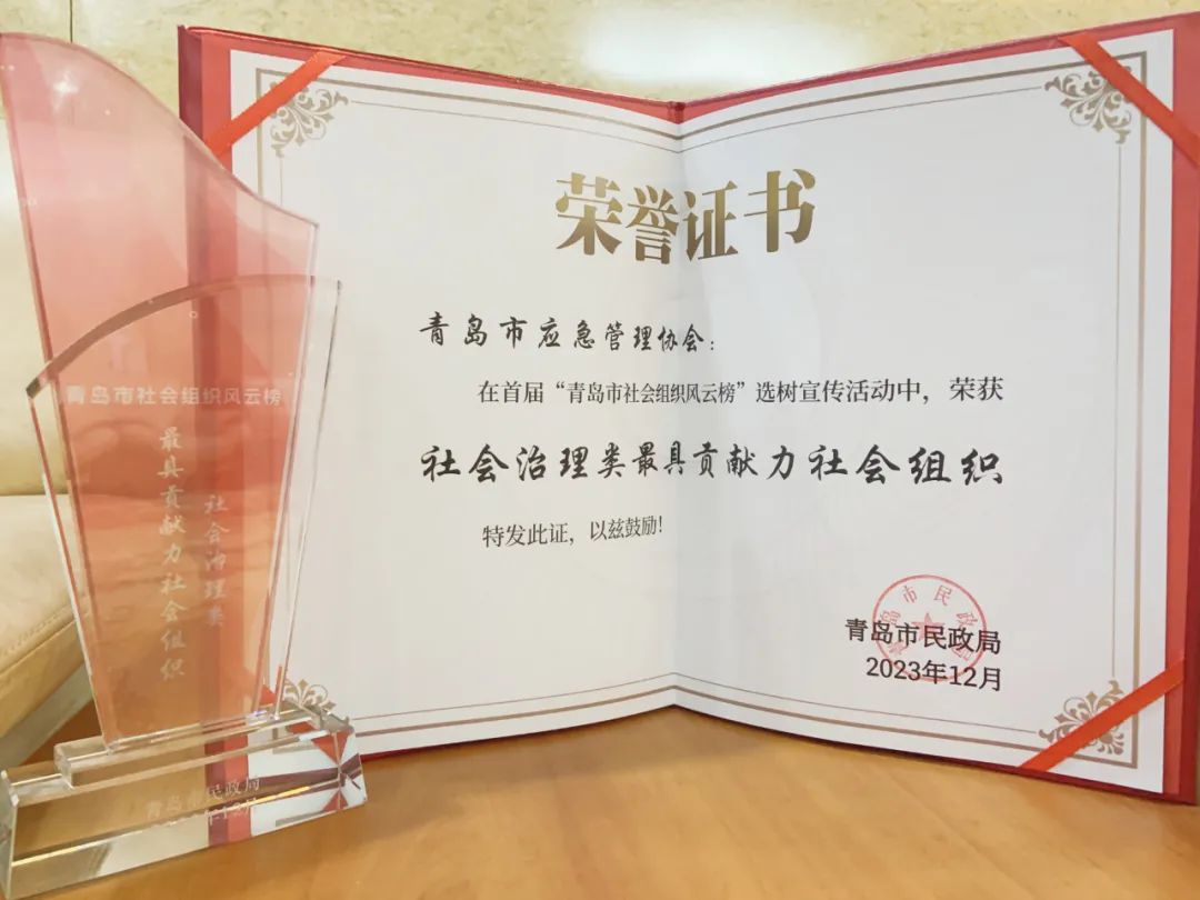 典禮現場,青島市應急管理協會在青島市民政局開展的“青島市社會組織風云榜”選樹宣傳活動中,從報名的232家社會組織中脫穎而出,榮膺“青島市社會組織風云榜社會治理類最具貢獻力社會組織”。協會副會長孫素朋代表協會登臺領獎。