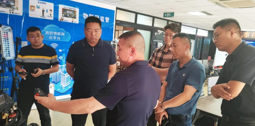 7月11日下午,新疆石河子市應急管理局副局長萬中兵一行蒞臨峻海物聯考察調研,青島市應急管理協會副會長孫素朋、億和海麗副總經理林永寶和峻海物聯相關職能部門負責人等陪同接待。
