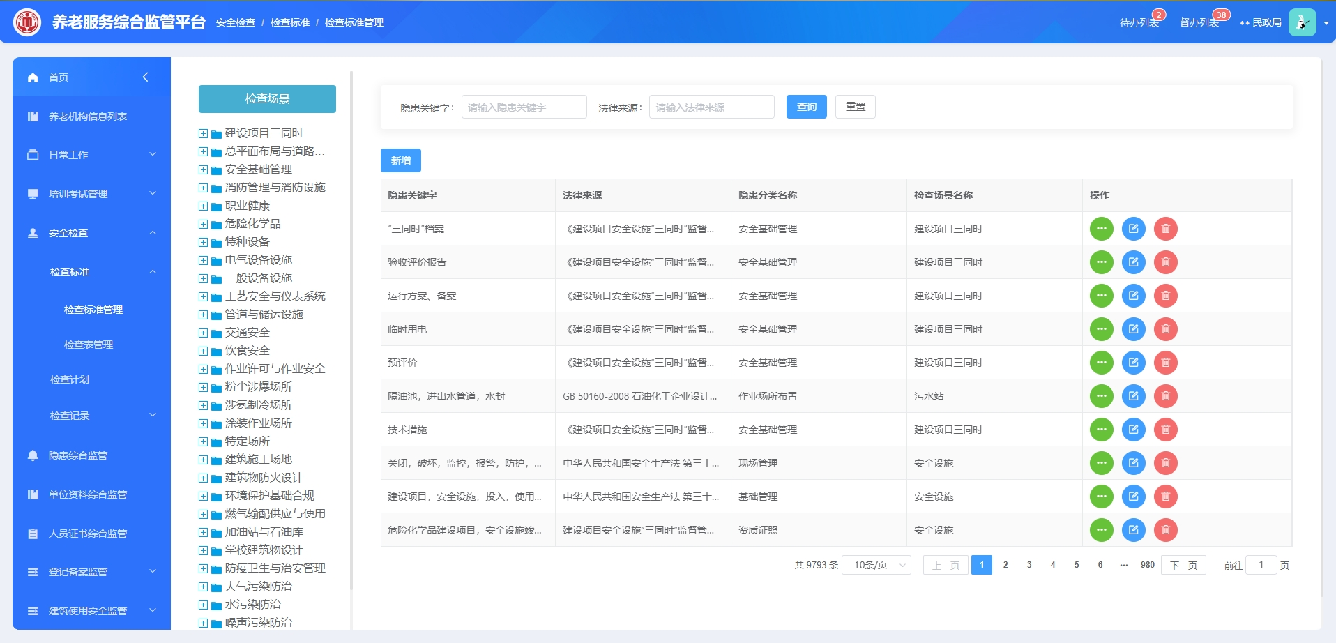 二是突出流程再造,打通堵點斷層。平臺按照“誰審批誰監管、誰主管誰監管”原則,建立了不同法人主體的養老服務機構名錄,歸集養老服務機構公共信息,整合建立了養老服務機構“綜合監管一件事”監管信息庫,并結合法律法規梳理各部門職責范圍內的監管事項,確定了12個監管主題、10個監管重點,21個檢查事項并逐一明確了監管主體和監管措施,梳理形成養老服務機構“綜合監管一件事”監管事項清單,可引領養老服務的高質量發展。