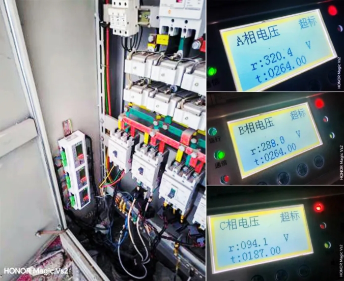在電業(yè)局工作人員的配合下,運(yùn)營工程師找到了該起隱患所在:是因托養(yǎng)院后院入戶電纜前端變壓器接地線損壞,導(dǎo)致入戶電壓升高和缺相嚴(yán)重超出標(biāo)準(zhǔn)閾值范圍。所幸發(fā)現(xiàn)及時,未造成火災(zāi)事故和人員傷亡。